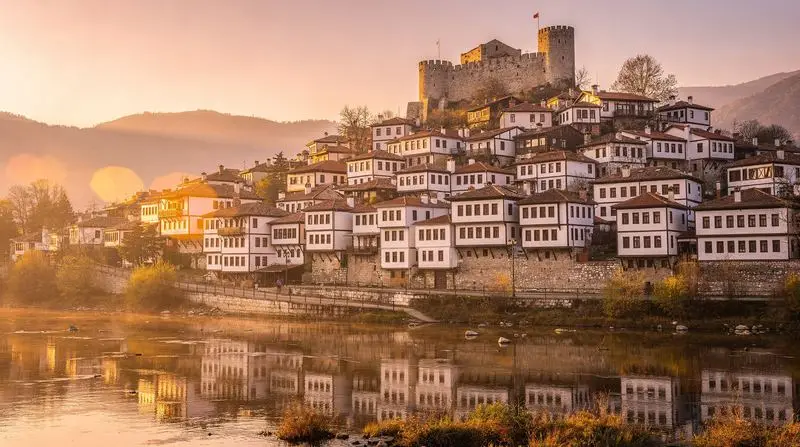 We arrived in the late afternoon, the light already turning amber, and drove over the bridge across the Osum River into town. From the bridge you see the hillside for the first time — the white Ottoman houses climbing the slope in irregular layers, the castle walls above them, the whole composition reflected faintly in the slow water below. We pulled over and simply stood there for a few minutes. Neither of us spoke, which is not typical.