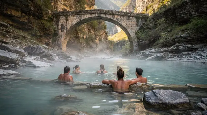 Albania sits on active geothermal ground, and the result is a scattering of natural hot springs that emerge from river gorges, limestone cliffs, and mountain valleys across the country. These are not manicured spa resorts — they are raw, natural phenomena where warm mineral water pools beside cold rivers, steams in cool air, and, in the case of the most famous site at Benja near Permet, flows directly under a beautiful Ottoman stone bridge. The experience of soaking in warm geothermal water with a mountain gorge above and a clear Albanian river beside you, spending almost nothing, is one of the most distinctive pleasures Albania offers.